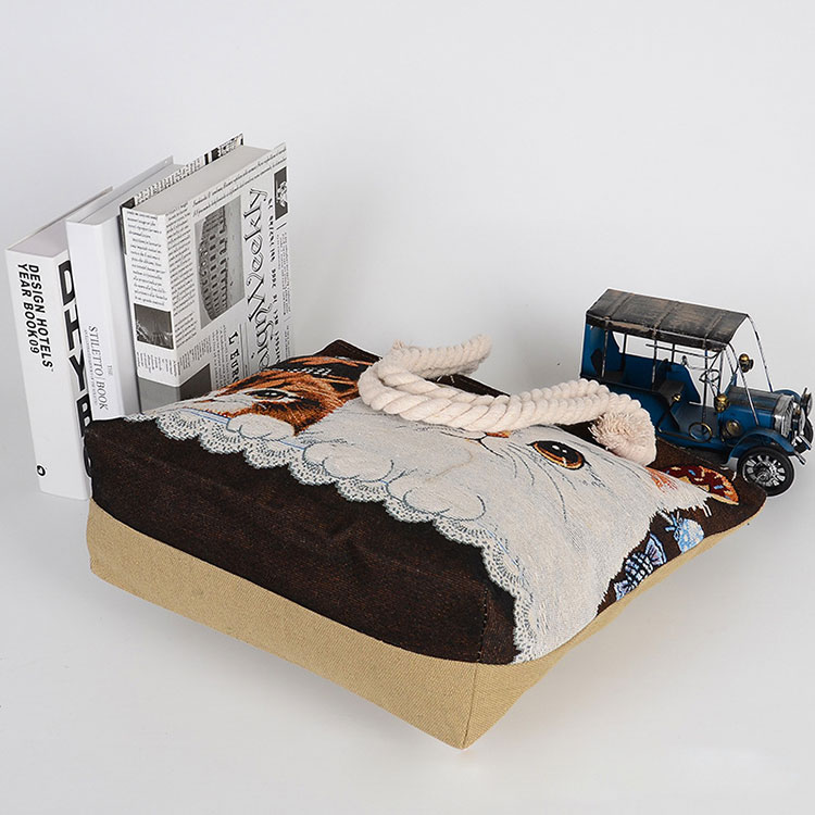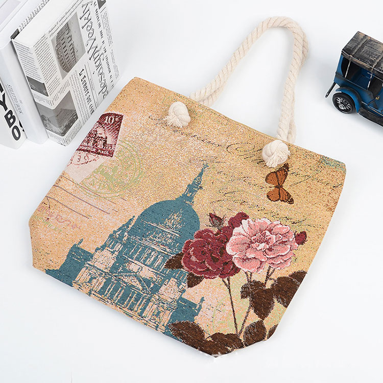 Εξαιρετική ραπτική σε πάνινη τσάντα με λαβή σχοινιού και ραφή με τύλιγμα στις άκρες αποτρέπει αποτελεσματικά το σχίσιμο της επένδυσης).