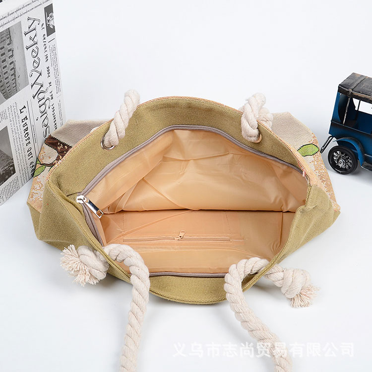 Η Canvas Tote Bag with Rope Handle είναι κατασκευασμένη με κλείσιμο με φερμουάρ που γλιστράει ομαλά και μπορεί να εμποδίσει τα εσωτερικά σας αντικείμενα να πέσουν.
