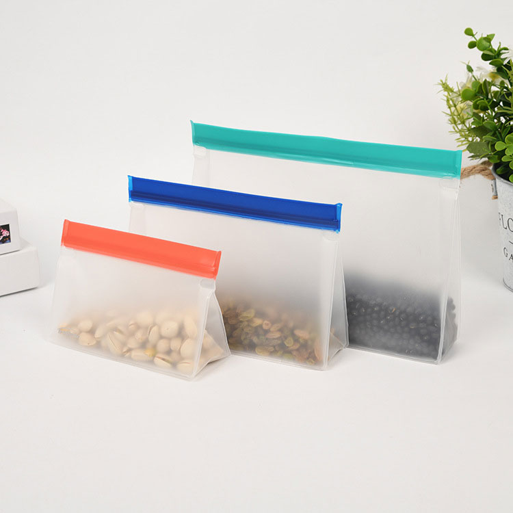 Η τσάντα PEVA διαρροής είναι επαναχρησιμοποιήσιμη και ανακυκλώσιμη. Οι αναβαθμισμένες κλειδαριές φερμουάρ διπλού στρώματος καθιστούν τις σακούλες αποθήκευσης πιο σφραγισμένες. Είναι ανθεκτικό σε διαρροές, αδιάβροχο και μπορεί να διατηρήσει τη φρεσκάδα του κρέατος, των σνακ, των φρούτων, των λαχανικών κ.λπ.