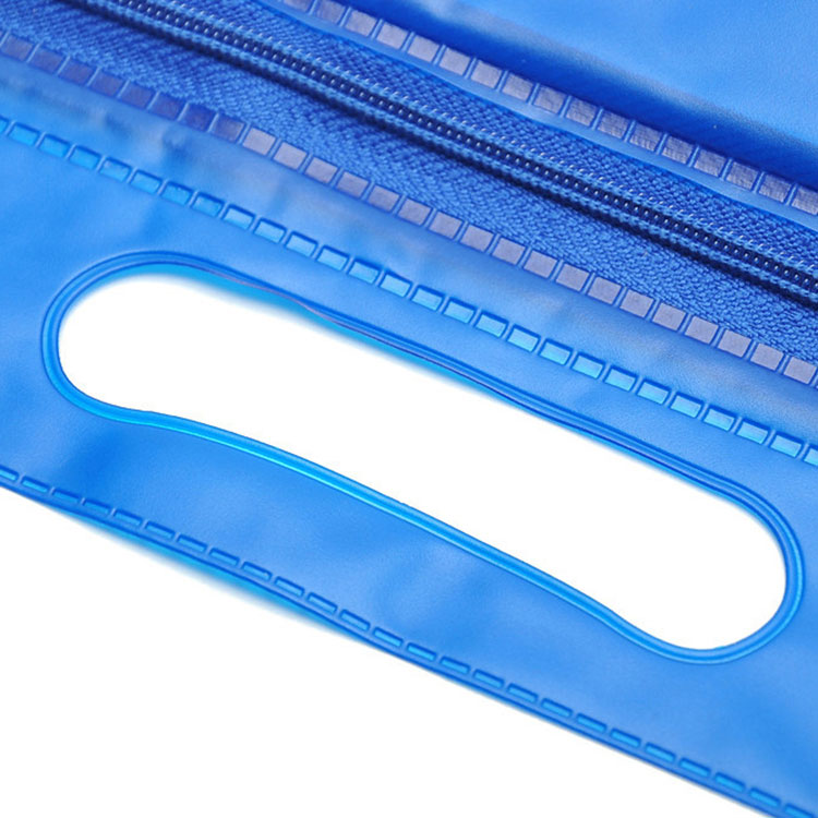 Το υλικό PVC της standup PVC Zipper Waterproof Bag είναι παχύ. Η λαβή είναι δυνατή και ανθεκτική και δεν παραμορφώνεται μετά από πολλές φορές χρήση. Έχει ποικιλία χρωμάτων και μπορεί να προσαρμοστεί με πλούσια χρώματα.