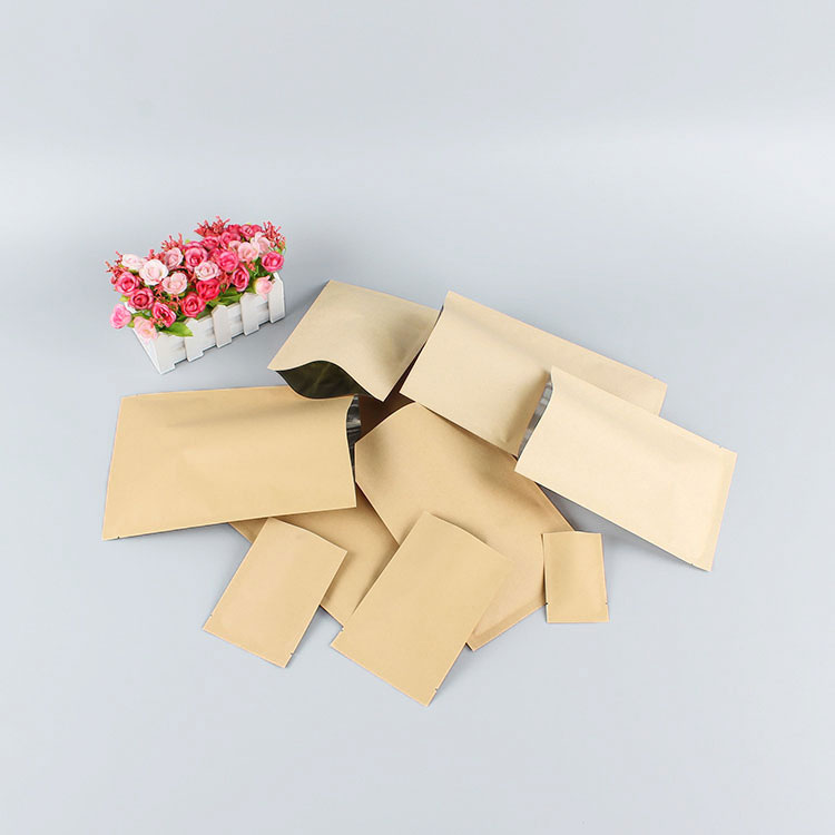 Οι χάρτινες σακούλες Kraft Sealing Three Sides Sealing είναι μια καλύτερη εναλλακτική για να αντικαταστήσουν τις παραδοσιακές πλαστικές σακούλες ή δοχεία. είναι μιας χρήσης, οπότε μόλις ολοκληρωθούν, μπορείτε να τα πετάξετε στον κάδο απορριμμάτων. Επιπλέον, μπορεί να είναι ανακυκλώσιμο και είναι κατασκευασμένο από φιλικό προς το περιβάλλον υλικό.